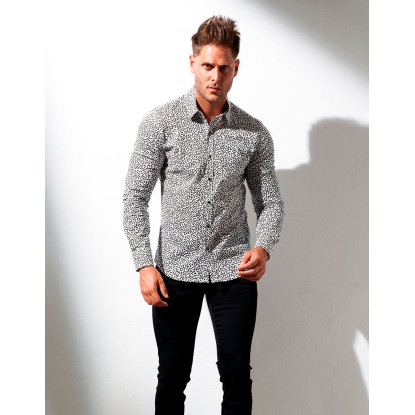 CAMISA AJUSTADA,MANGA LARGA,ESTAMPADA,CON TEJIDO ALGODÓN/ELASTANO.