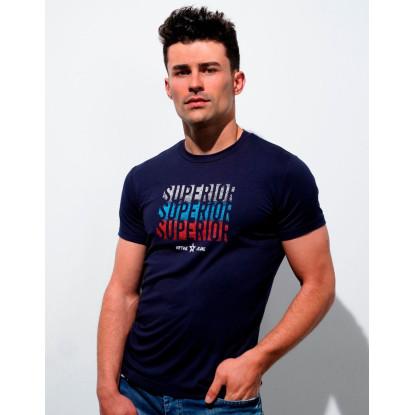 CAMISETA AZUL MARINO CON ESTAMPACIÓN,MANGA CORTA,AJUSTADA,MUY CÓMODA,GRAN CALIDAD.FABRICADA EN ESPAÑA.