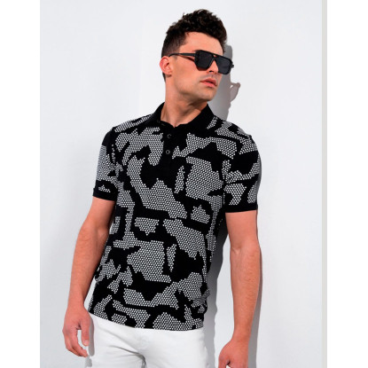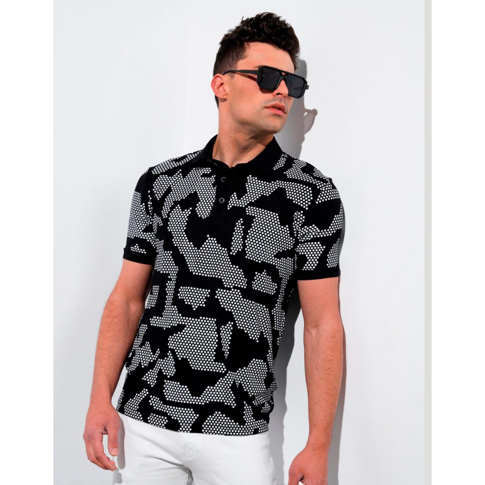 POLO NEGRO ESTAMPADO,MANGA CORTA,VISCOSA/ELASTÁN.