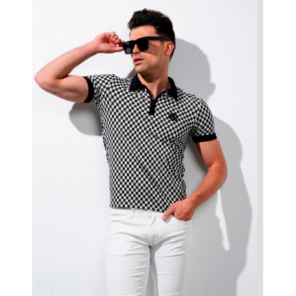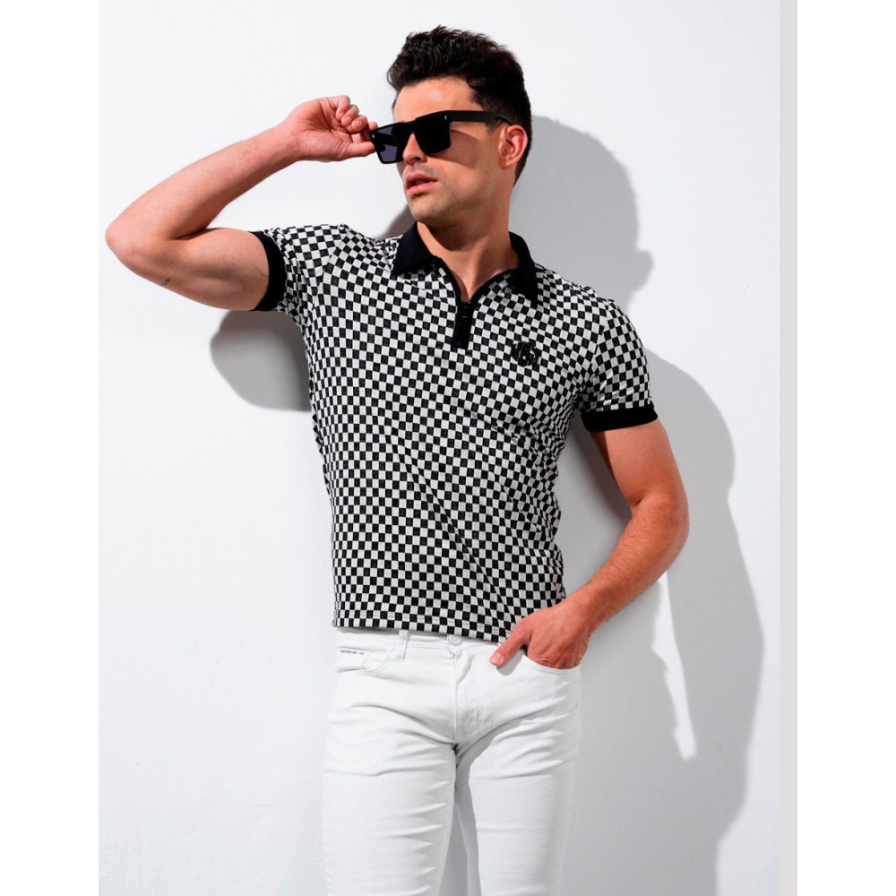 POLO CUADROS,MANGA CORTA,POLIESTER/ELASTAN.
