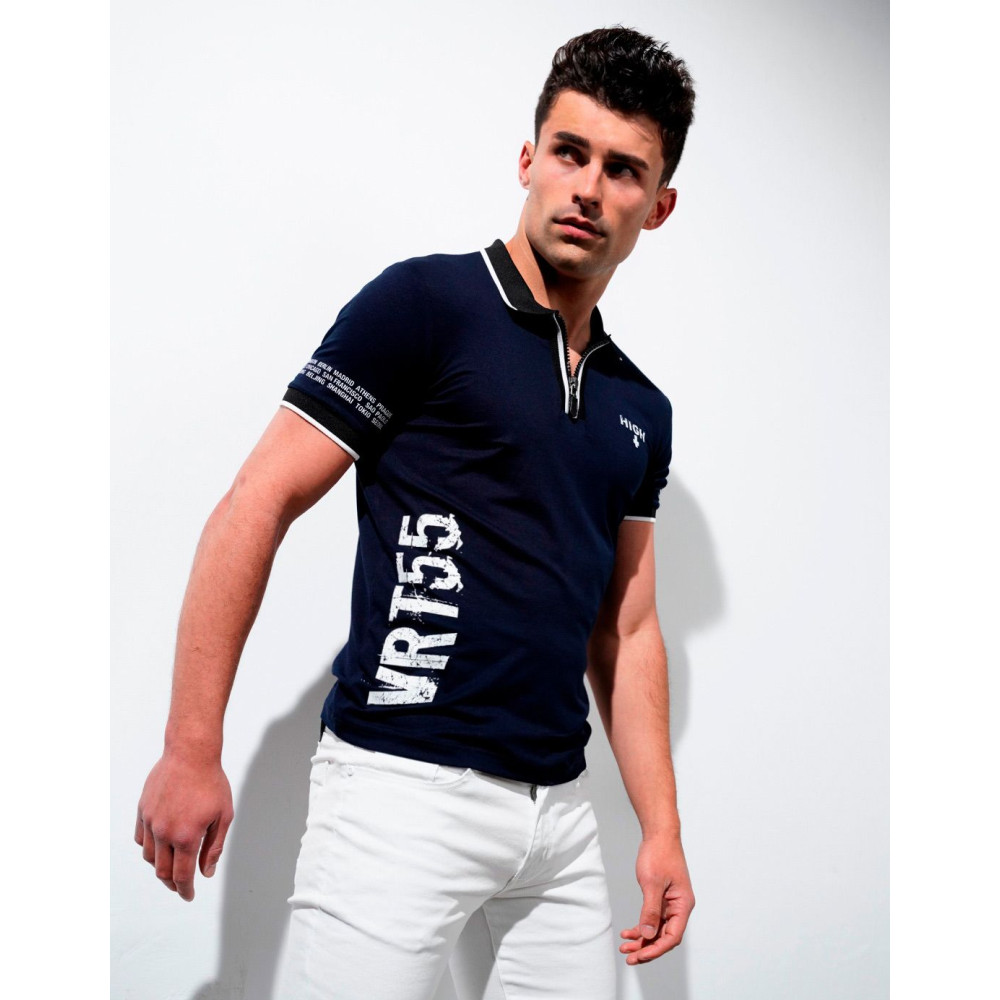 POLO AZUL MARINO Y BLANCO,MANGA CORTA,MUY CÓMODO.DISEÑADO Y FABRICADO EN ESPAÑA.